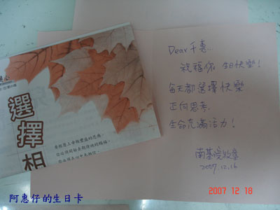 當然這個月生日的我也不列外看她親手做的卡片